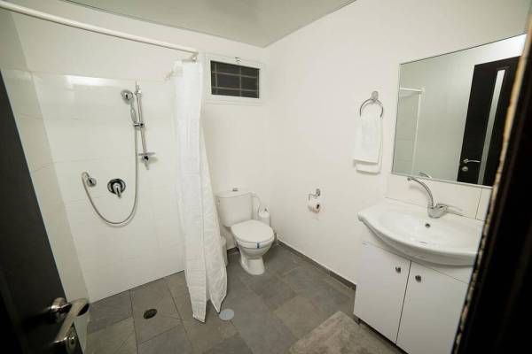 חדר רחצה אסתטי עם שירותים ומקלחת