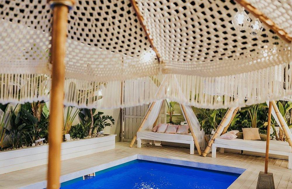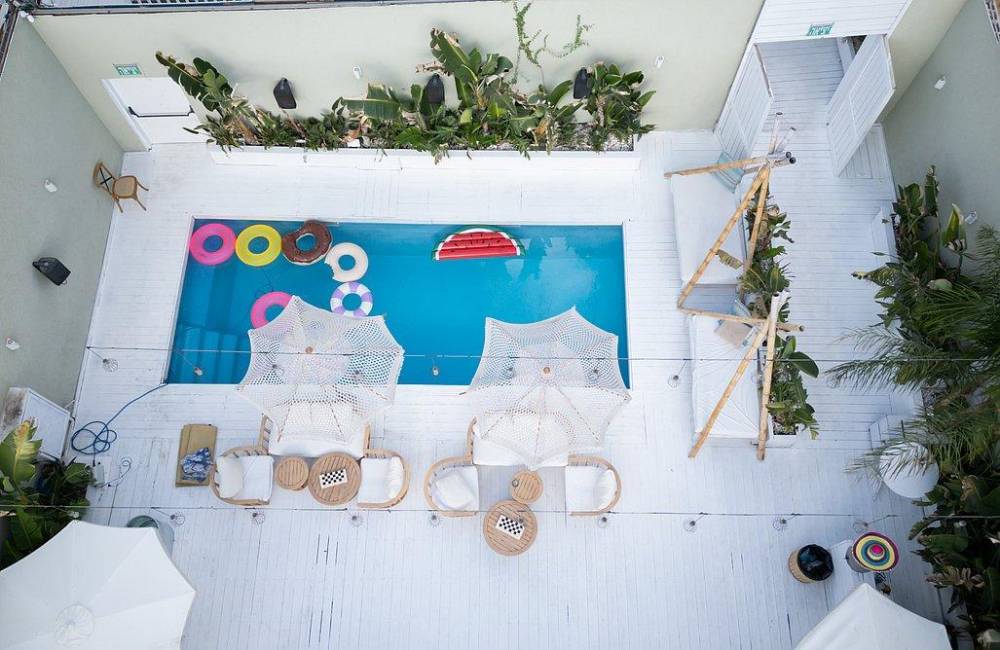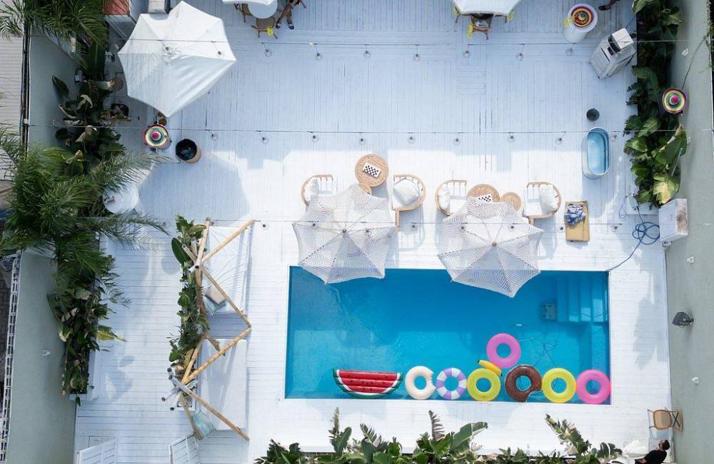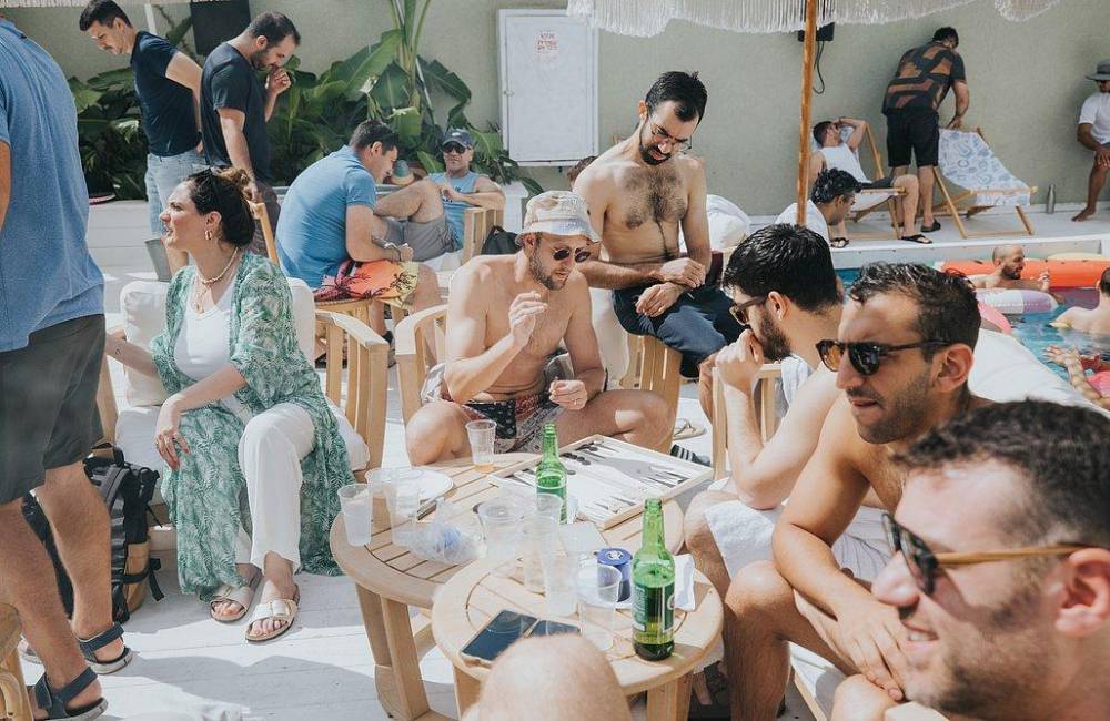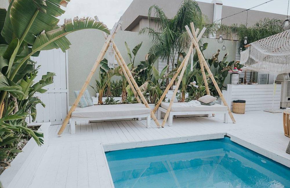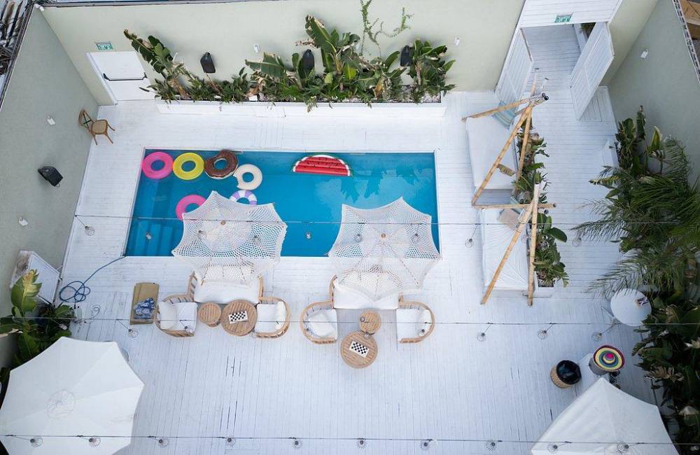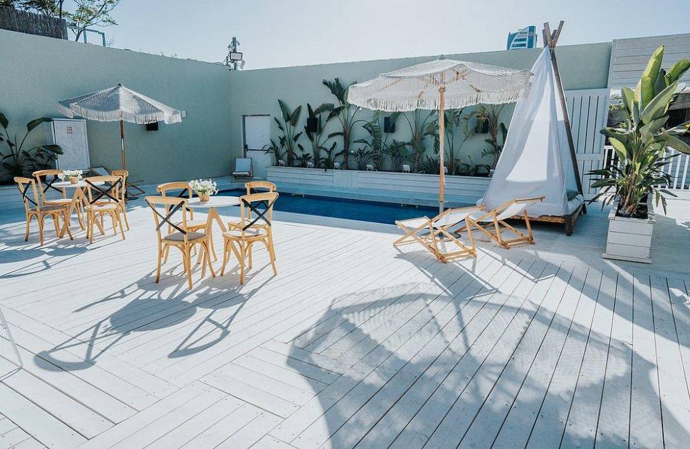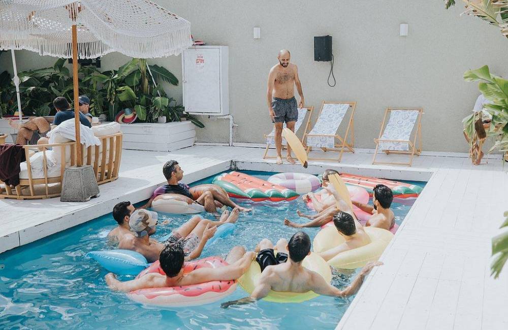 במתחם חצר מפנקת ואבזור מתקדם כגון מערכות תאורה והגברה, בריכת שחייה, שולחנות, כסאות, עמדת דיג'יי ועוד.