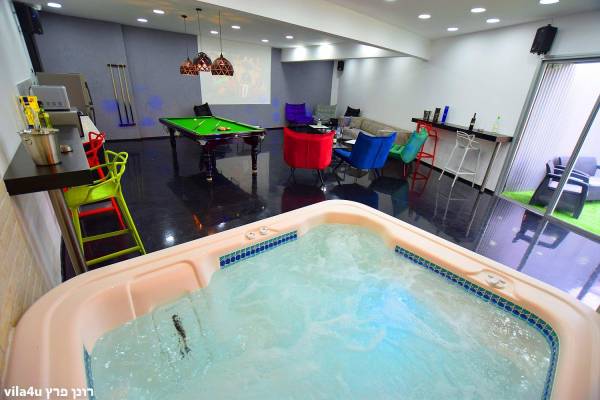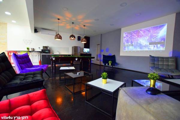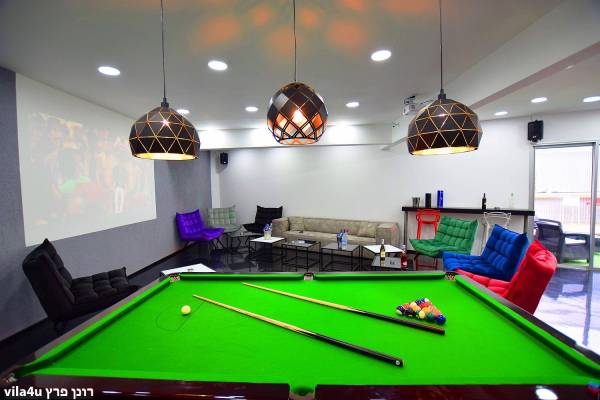 במתחם עיצוב מרהיב עם דגש על כל הפרטים הקטנים, שולחן סנוקר מקצועי, מערכות שמע מקצועיות, ג'קוזי ספא ואף חדר מנוחה גדול עם מזרנים ענקיים בנוסף קיימת יציאה אל חצר מפנקת עם בריכה, פינת מנגל פינות ישיבה ועוד
