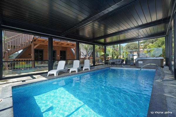 במתחם החיצוני תוכלו להנות מבריכת שחייה מחוממת ומקורה, שולחן פינג פונג ואף גם טרמפולינה לילדים.